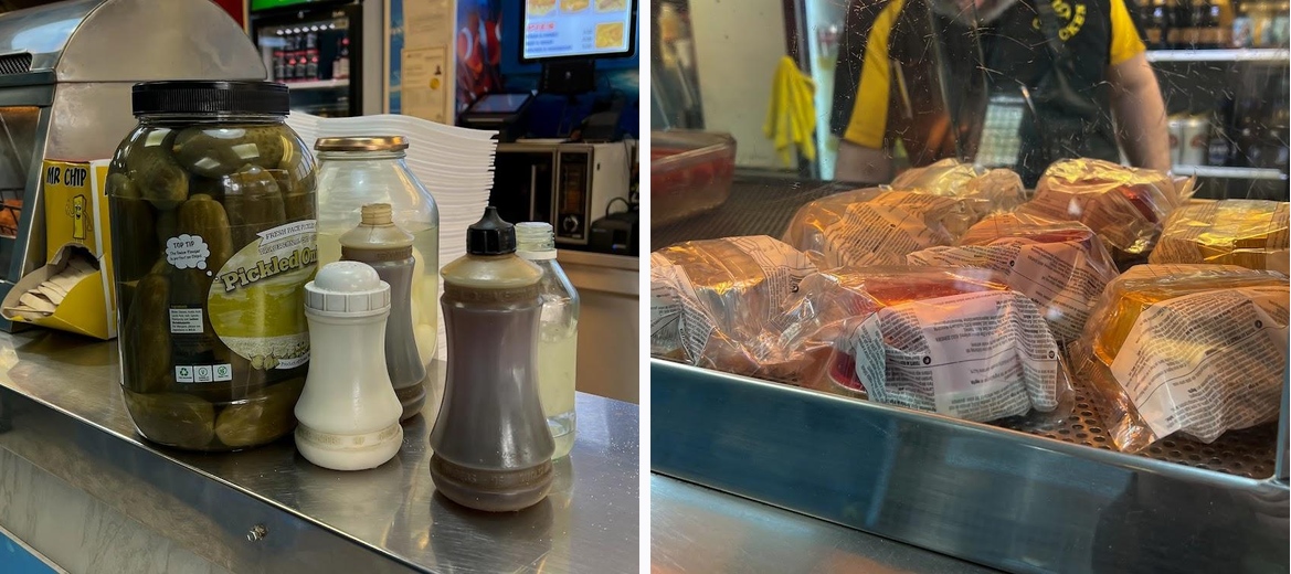 Lovely freshly cooked sausage and chips for my granddaughter, guy serving very friendly and gave my granddaughter a lollipop.